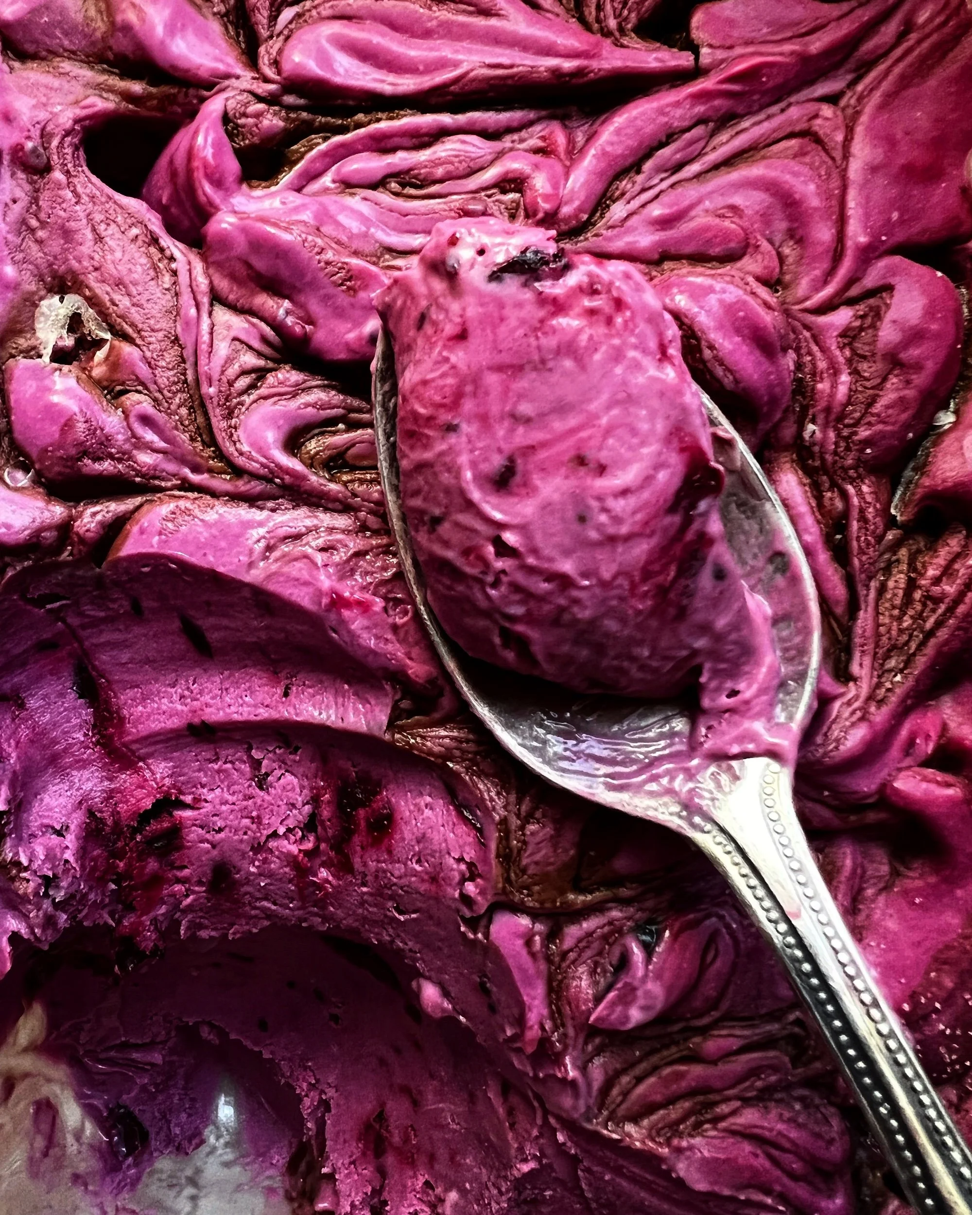Simply dazzling: Day 281 is Nigella’s No-churn Blackcurrant Ice Cream with Liquorice Ripple.