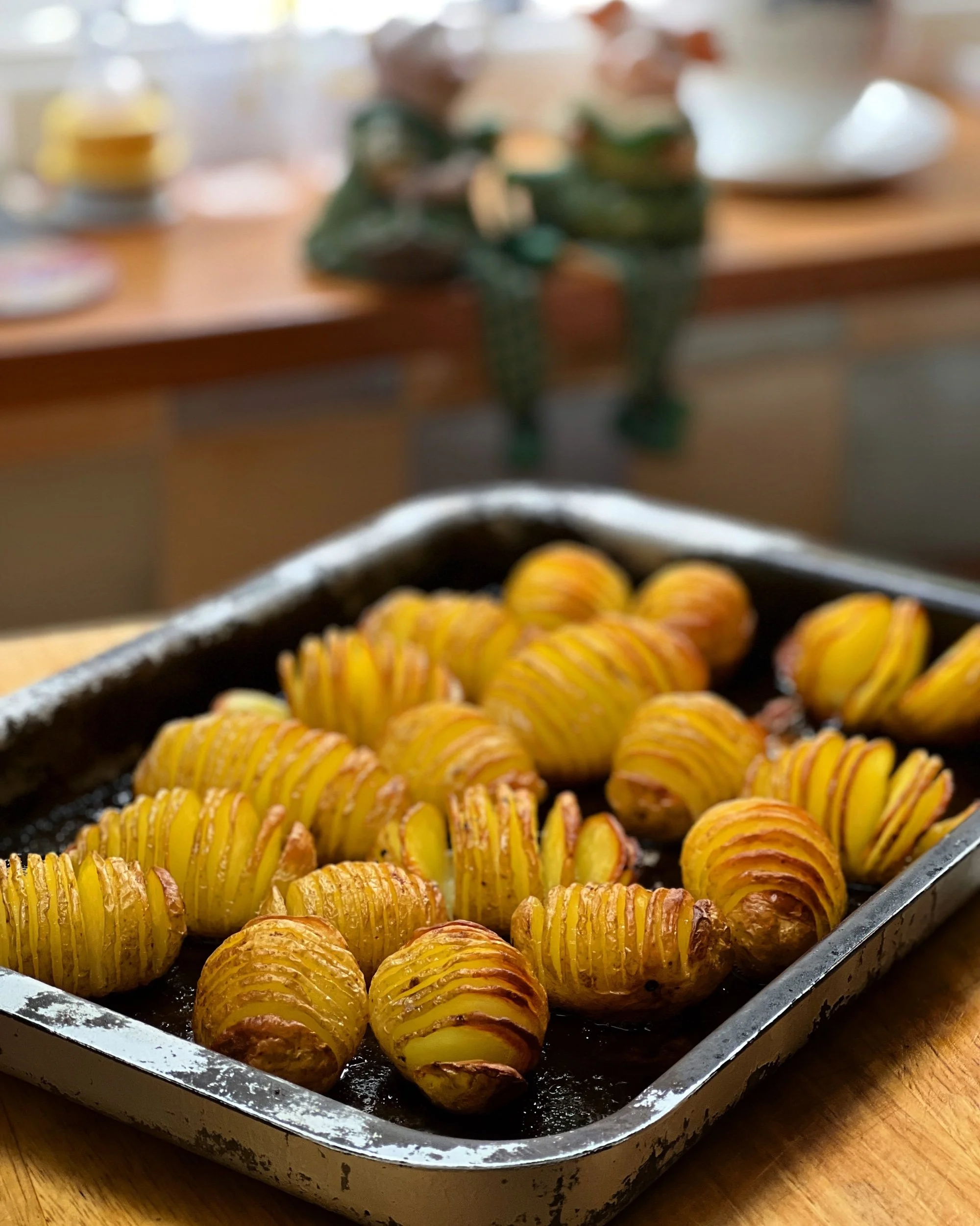 Maximum crispiness and satisfying chew: Day 286 is Nigella’s butter-roasted Hasselback Potatoes.