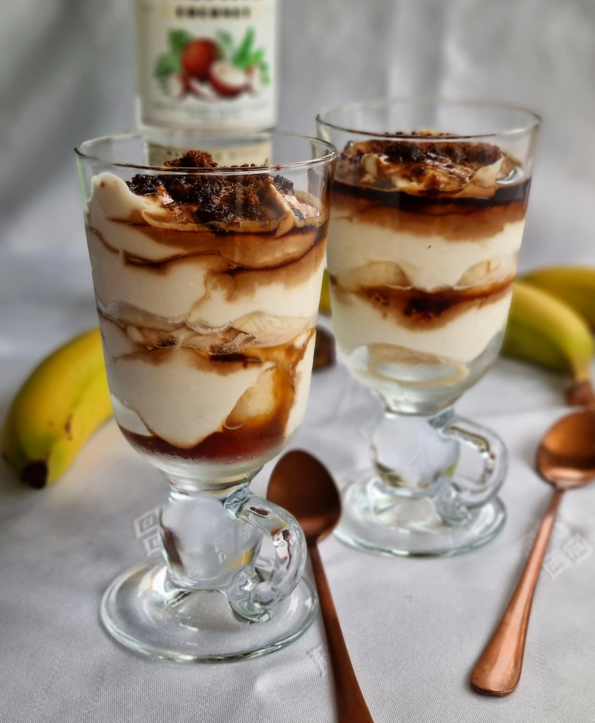 There really is something very old-fashioned and comforting about eating pieces of sliced banana from a glass vessel, whether it be enveloped in cream or cold custard (and covered with a fine shaving of dark chocolate) or in a fruit salad. I now have a craving for tinned fruit salad with a drizzling of evaporated milk (I gave up on tinned fruit salad a while ago because they got so tight with the cherries!).