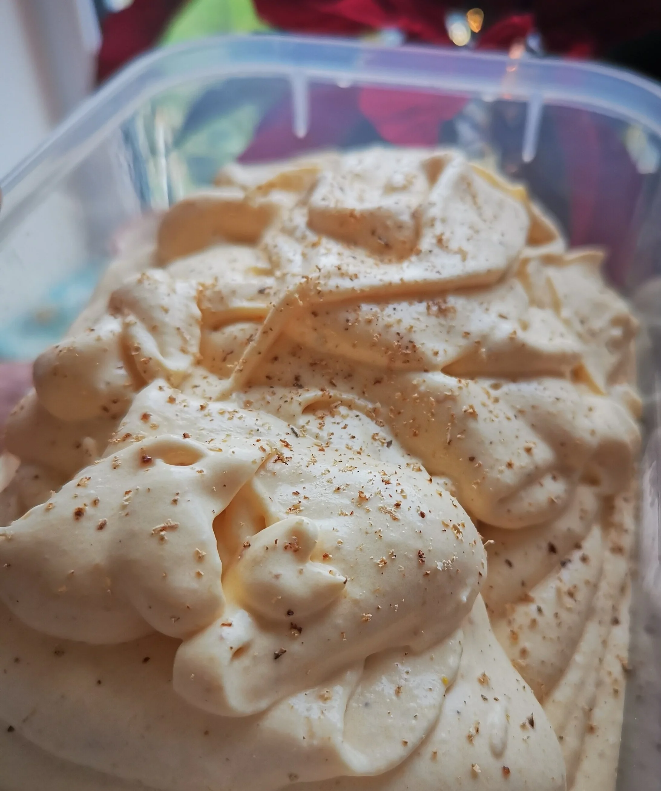 Nigella’s No-churn Brandied Pumpkin Ice Cream (pre-freeze), although just as voluptuously velvety post-freeze too.