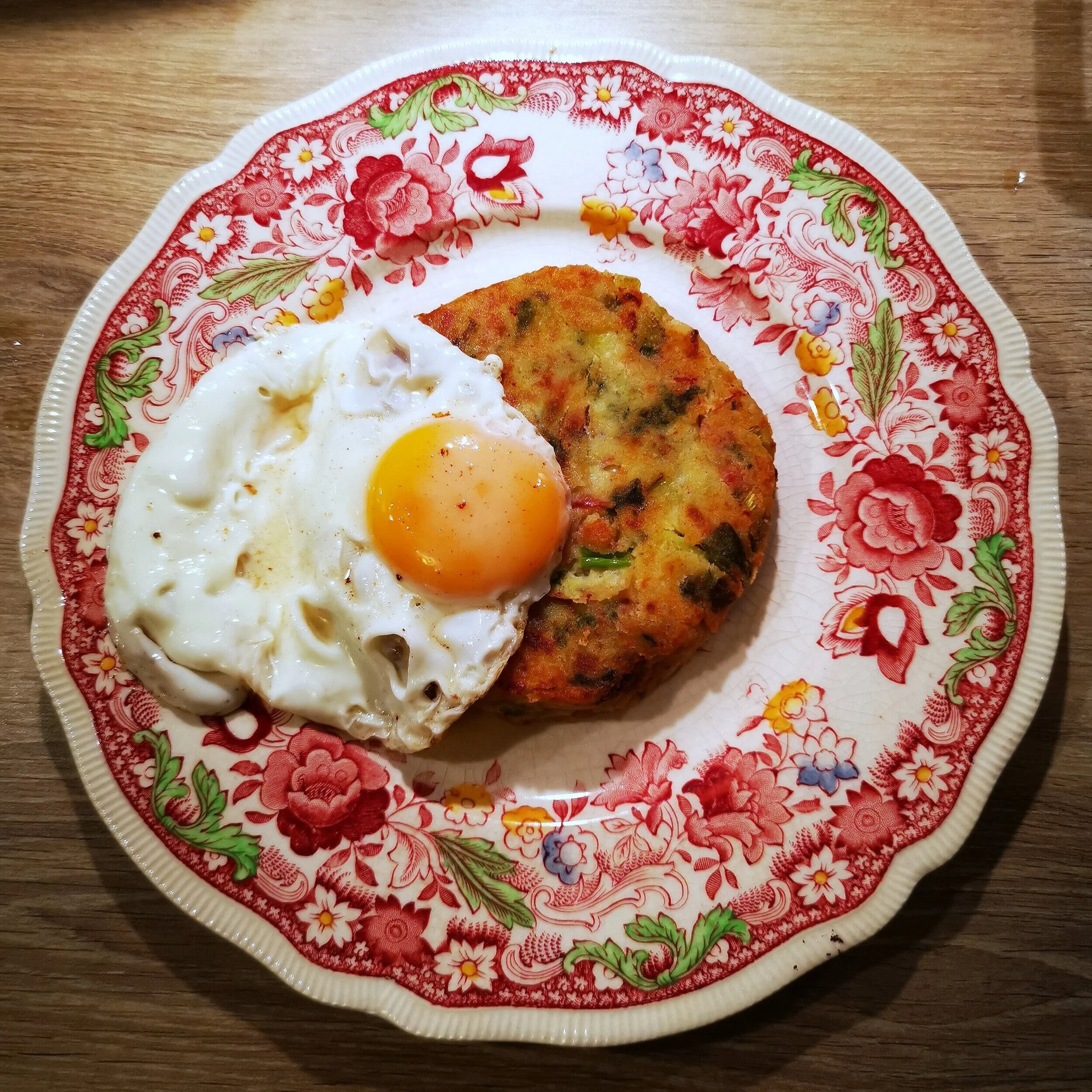 There was plenty of colcannon left over, and as suggested by the wise and wonderful Nigella, I made this into patties and served with a fried egg for dinner the next day. Into my patties, I also added some other Christmas leftovers: a little grated blue cheese and some of Nigella’s Slow-cooked Black Treacle Ham.
