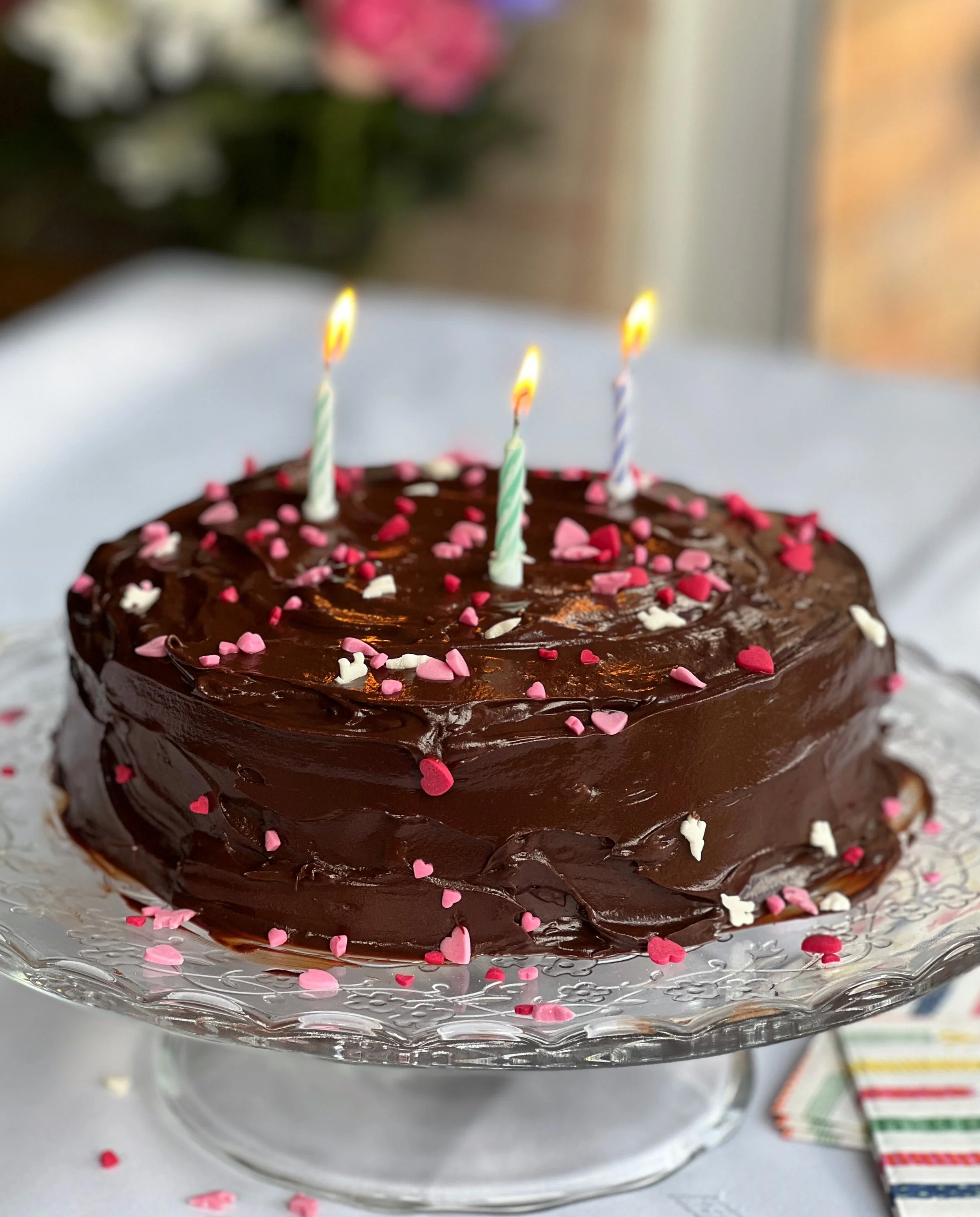 Of course, a birthday calls for cake and it obviously had to be a Nigella one: Day 277 is Nigella’s Devil’s Food Cake; unintentionally decorated to look more like a Valentines cake (they were the pinkest sprinkles I could find, though you should be able to make out a few unicorns sinking into the Devil’s frosting too).