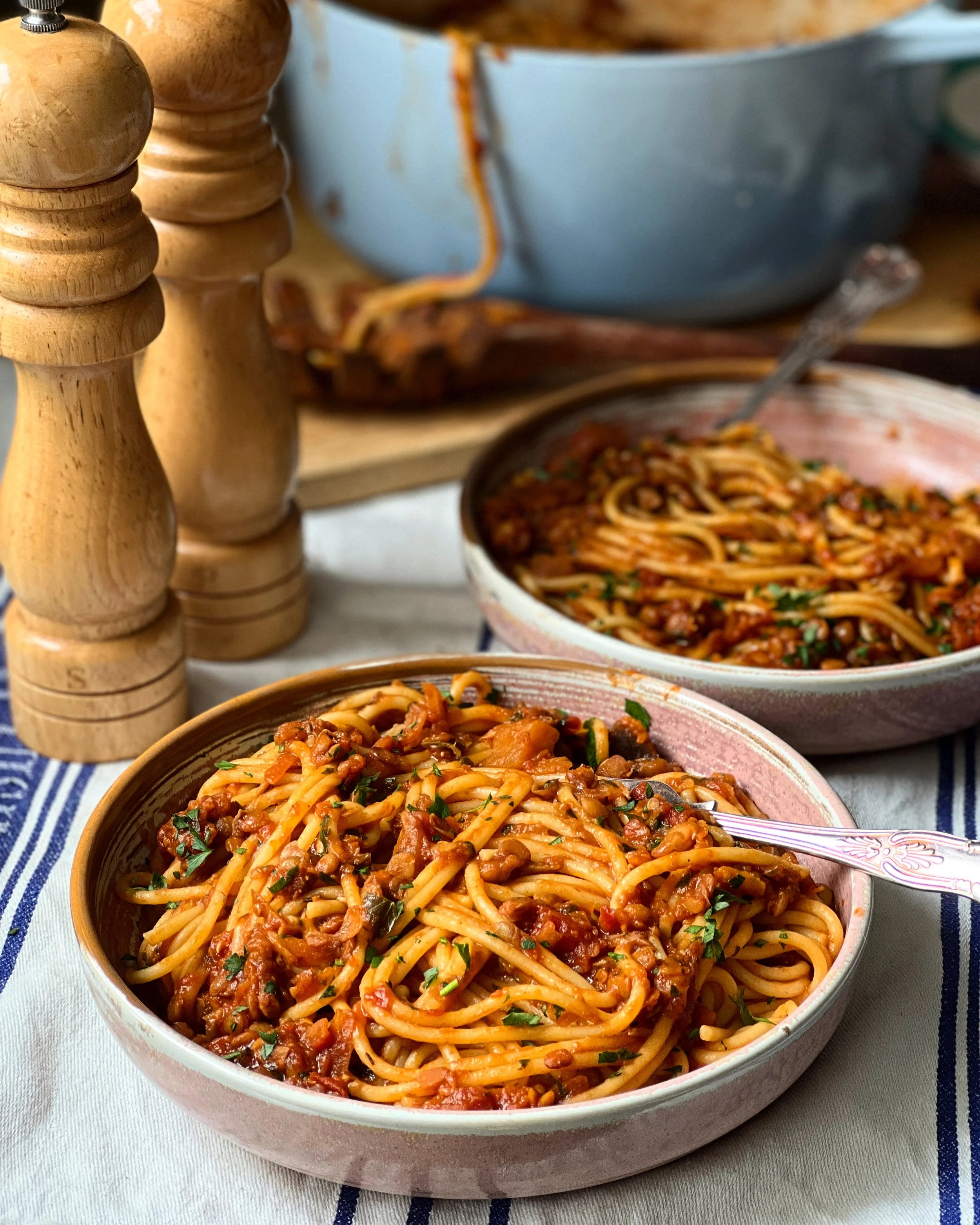 A comforting concoction of some of nature’s finest flora (and fungi) - bolstering lentils, beefy aubergine and hand-picked, home-dried ceps - tossed in generous quantities through a golden tangle of spaghetti: Day 292 is Nigella’s Vegan Spag Bol (more parsley added after photo). It’s like that big hug you get when your favourite aunt comes to visit: it makes you feel uplifted and reassured and you never want it to end.