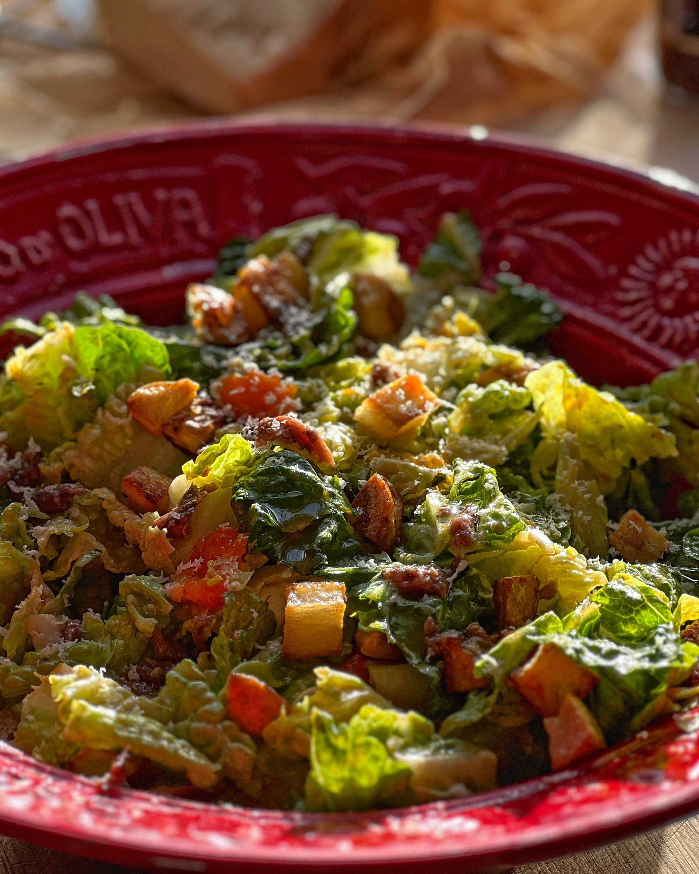 A big bowl of crisp lettuce, glazed with a rich, yolky emulsion glistening in the January sun. Salty with parmesan and studded with garlicky roast cubetti di patate. Day 336 is Nigella’s Caesar Salad*. This was one of Nigella’s recommendations for the Final 30, and sublime is my word for it.