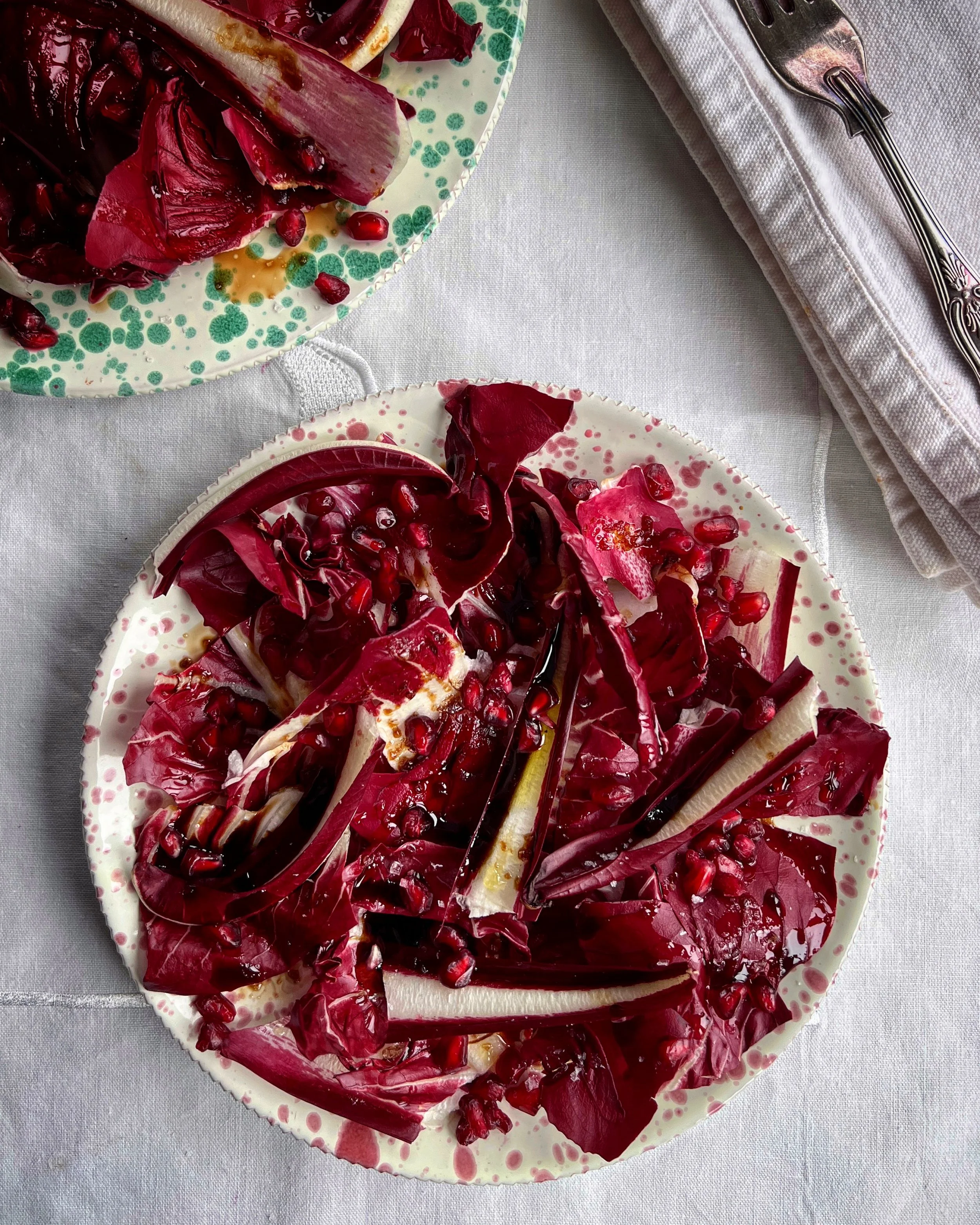 And, if I may say, this beautiful, cranberry-splattered, handmade Puglian plate - from Hot Pottery - is a perfect match for the heavenly radicchio.